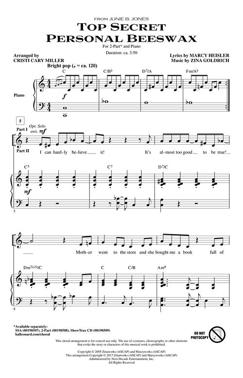 Junie B. Jones - The Musical by Marcy Heisler and Zina Goldrich, is based on the popular children's book series, and this top song will be a fun and theatrical selection for SSA and 2-Part choirs to experience and build expressive skills!