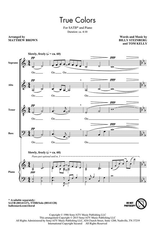 True Colors Publisher: Hal Leonard Category: Choral Series: Voices Rising Format: Paperback Concert choirs and vocal ensembles will shine in this warm setting of the classic '80s song by Cyndi Lauper. A wonderful selection as part of a set of lighter selections or an encore! ScorePlay - click to view score with recording. (https://youtu.be/CyNAxYjIbcQ) Inventory # : 00141127 UPC: 888680043100 ISBN: Width: 6.75" Length: 10.5" Height: 0.036" Product Weight: 0.1 lbs. Number of Pages: 16