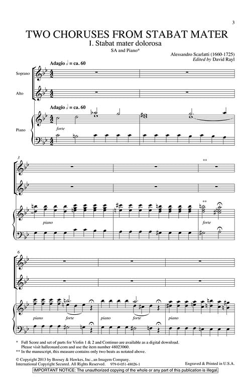 This edition, employing modern scholarship and notation, along with insightful program notes, allows singers and directors to drill deeply into the style and musicianship of this master composer. It may be performed with the keyboard realization or with the original instrumentation for two violins and continuo. A Baroque treasure! Duration: ca. 6 minutes.