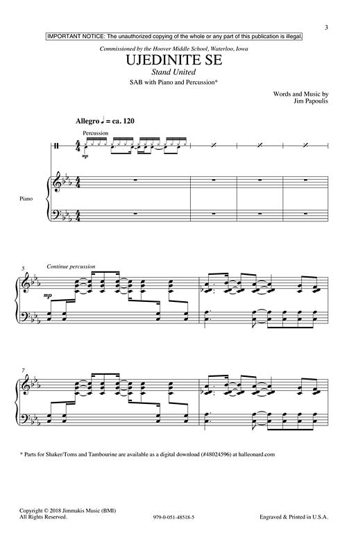 With the mission to celebrate and unite the different cultures in a midwestern city, Jim has crafted an upbeat and powerful anthem that includes Arabic, Bosnian, Hebrew and English. An easy to read phonetic pronunciation guide is included removing text barriers. Hand percussion parts are included in the octavo.