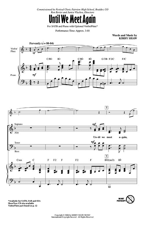 Expressive lyrics and a graceful melody reinforce the message of friendship and growth in this Kirby Shaw original. Performance Time: Approx. 3:10.Available separately: SATB, SAB, SSA and ShowTrax CD.