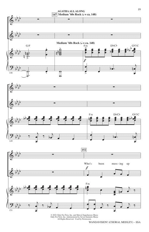 Disney & Marvel's Cinematic Universe delivered this highly entertaining (and musical) spin on classic TV sitcoms with the hit Disney+ series, WandaVision! Now you can sing all of the decades' instantly-classic theme songs with your choir, wrapping up this charming and nostalgic medley with a rousing edition of Agatha All Along. This is gonna be a gas!