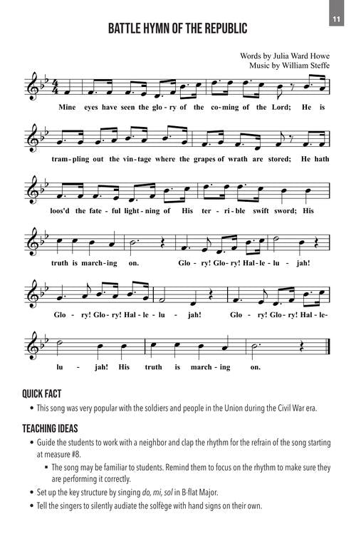 Keeping singers in our ensembles excited and energized during the warm-up process is a consistent hurdle for educators across the nation. By using songs that are indigenous to different parts of our country, teachers in choral classrooms can help students prepare their minds, bodies and voices while sharing a bit of our culture and history from different areas of the United States. All of the songs can be used with both inexperienced beginners and advanced singers. The lesson suggestions introduced with each song are intended to be a springboard for teachers to modify and adapt to their own students' needs and skill levels. Each melody includes strategies that are accessible for those who are just learning how to use their voices, and also for those more sophisticated singers who enjoy a good challenge.
