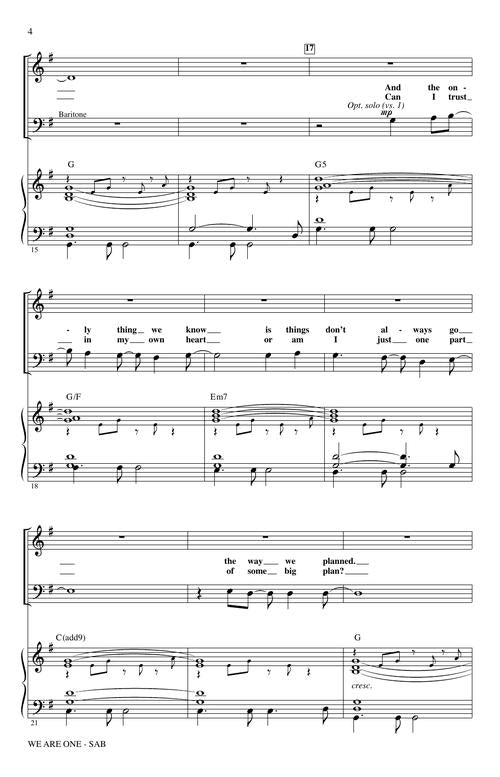 Full vocal sonorities create a dramatic anthem to the power of the human spirit in this inspirational choral setting by Roger Emerson. Available: SATB, SAB, 2-Part, ShowTrax CD. Performance Time: 3:10.