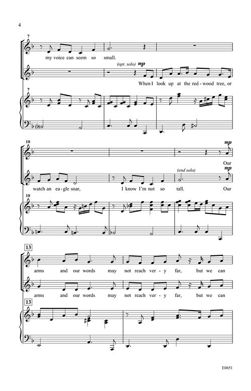 With a powerful message, this choral has a strong, easy chorus and opportunities for solos. The song builds musically and dynamically throughout. With the addition of the American Sign Language instructions and graphics, it will be visually moving and informative. Reproducible graphics are provided within the choral for t-shirts, posters, and event programs. Definitely an inspirational choice!