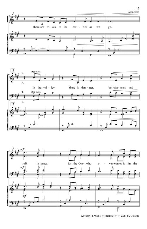 Uses: Ash Wednesday, Lent, Holy Week, memorial, healing, Christ the Good Shepherd Scripture: Psalm 23:4; Proverbs 4:18; Revelation 21:24 A beloved spiritual is given a new sense of purpose in this thoughtful choral for Holy Week or Lenten moments. The journey of faith is a winding road, but we will never walk it alone. That is the promise that forms the heart of this moving new sacred anthem. Duration: ca. 3:55.
