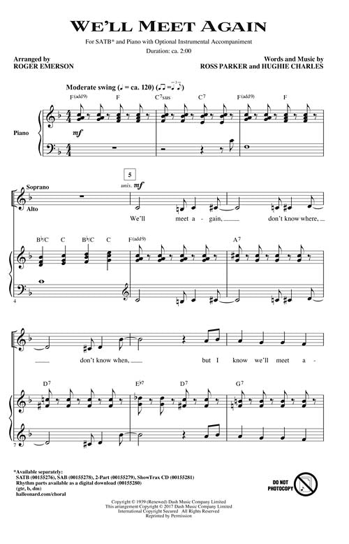 This song, one of the most famous of the World War II era, was reprised on the last broadcast of The Colbert Report by Stephen Colbert and an assembled crowd of many of his most prominent guests. A great concert closer or graduation selection!