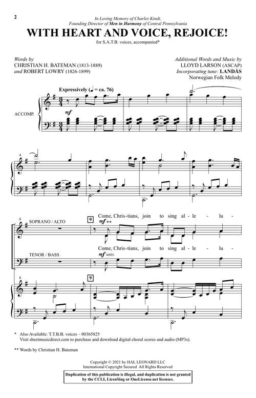 This festive call to praise affirms the voice of worship and invites the world to sing along. Solid writing permeates the piece, giving choirs much to work with as they seek a full confident sound. The inclusion of the beloved tune LANDAS with the text of How Can I Keep from Singing is a moving moment, making this an excellent choice for choirs returning to the loft.