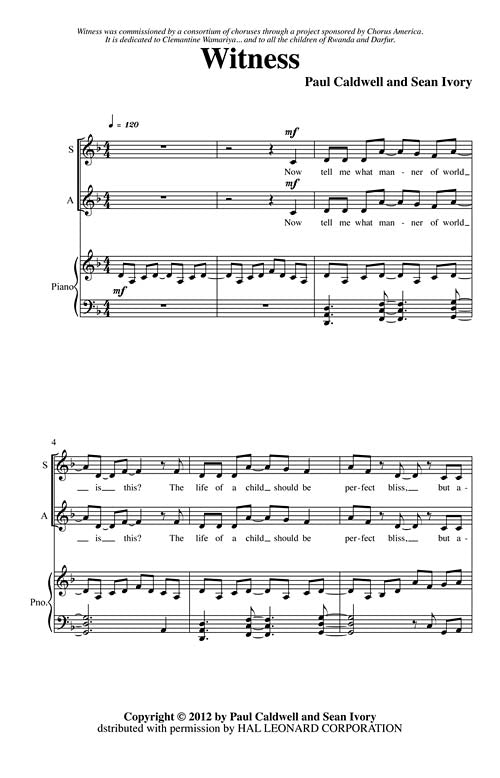 Loosely based on a well-known spiritual, Witness is designed to call awareness to recent episodes of genocide, particularly as they have impacted the lives of children. It is a chance for the singers, the children of fortune, to make a promise to the children of war. A powerful and dramatic work!