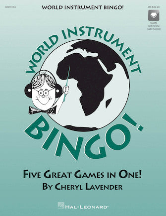 This item is the replacement CD only Timbales! Mbira! Shofar! World Instrument BINGO is an enjoyable collection of collaborative learning games your students can play to discover and identify folk instruments from around the world. Created by elementary music specialist and clinician, Cheryl Lavender, this game will help students identify tone colors, explore sound production, and compare cultural influences on music. The kit comes complete with 30 Bingo Play Cards, an instruction booklet with game directions and World Instrument Fun Facts, a CD with sound samples of 24 world instruments recorded on six separate sound sequences, a World Instrument poster, and 1 page of 24 cut-out caller cards. For Gr. 3-8.