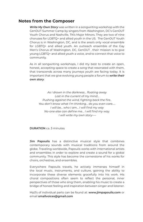 Written in a songwriting workshop with the GenOUT Summer Camp by singers from the GenOUT youth Chorus and Nashville's TN's Major Minors. The mission of these two choirs, along with seven others from the US is to give young LGBTQ+ and allied youth a voice, and to connect that voice to community. This important music gives evolving young people a forum to write their own story.