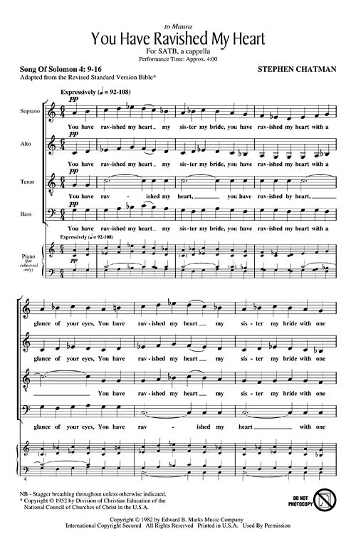 You Have Ravished My Heart Satb A Cappella Stephen Chatman