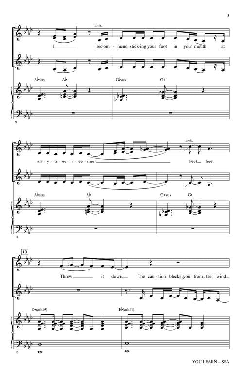 Alanis Morisette's 1995 mega-hit album Jagged Little Pill has been adapted for the Broadway stage, with critics placing it amongst the best of the jukebox musicals. You Learn is an alternative rock account of the importance of learning from a poor decision and moving forward.