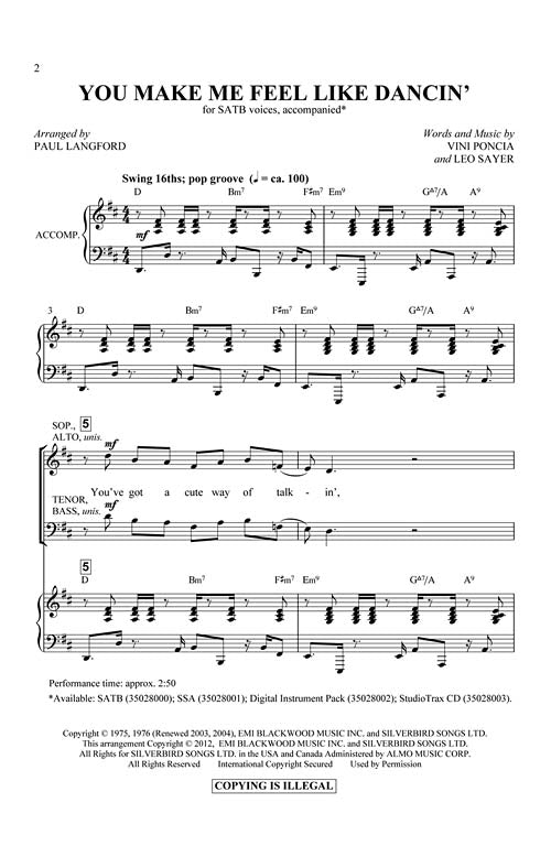 You Make Me Feel Like Dancing SATB Leo Sayer