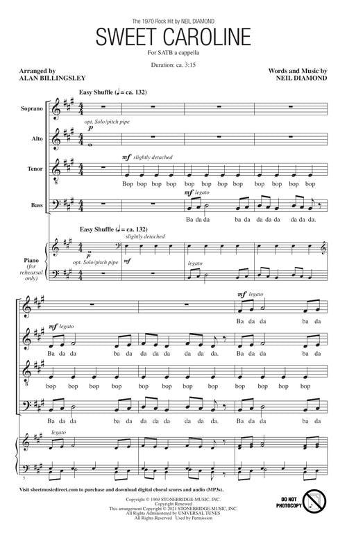 Sweet Caroline Satb A Cappella Pop Choral Series Neil Diamond