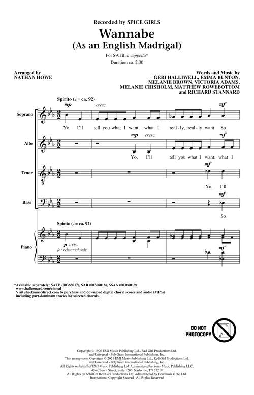 Wannabe As An English Madrigal Satb A Cappella Spice Girls