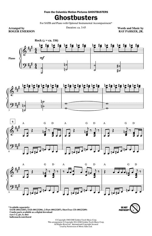 Ghostbusters Pop Choral Series Satb Ray Parker