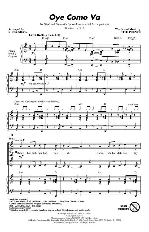 Oye Como VaPublisher: Hal LeonardCategory: ChoralSeries: Pop Choral SeriesFormat: OctavoThis Latin rock song by the great Tito Puente was recorded and made popular in 1970 by Carlos Santana. The Spanish lyrics Bueno pa gozar means It's...Regular price $26.99 -