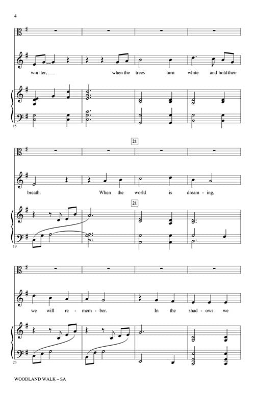 Woodland WalkArtist: Robert I. HughRobert I. HughPublisher: Hal LeonardCategory: ChoralSeries: Henry Leck Creating ArtistryFormat: OctavoVoicing: 2-PartThis beautiful poetic work for choir, piano, and viola is a poignant reminder that our interactions create powerful memories that last...Regular price $27.99