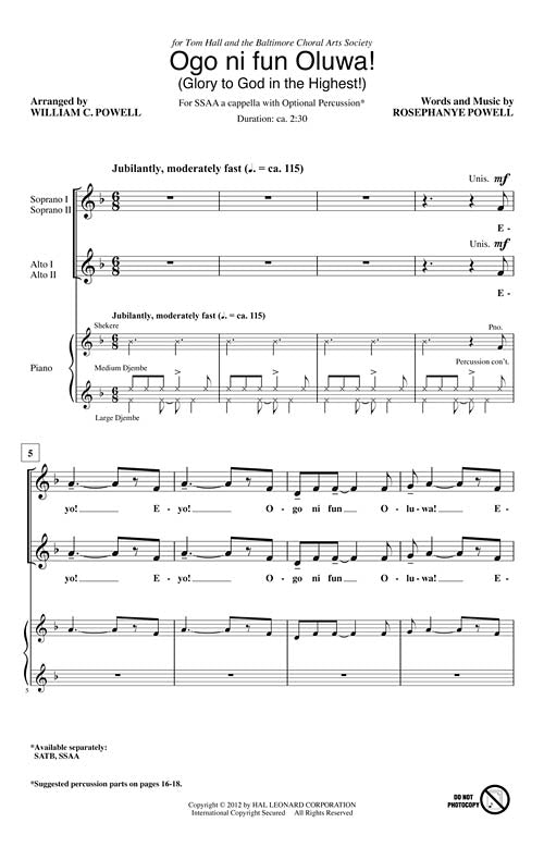 Ogo Ni Fun Oluwa Festival Choral Ssaa A Cappella Rosephanye Powel