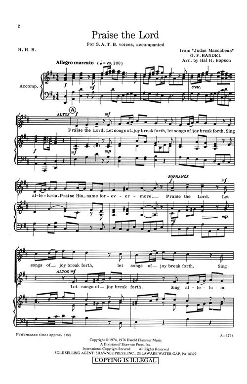 Praise The Lord From Judas Maccabeus Satb George Frideric Hande