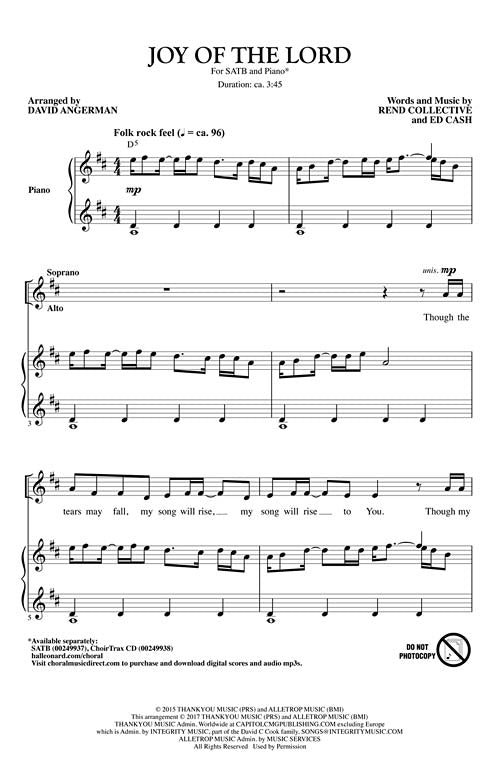 Joy Of The Lord Praisesong Choral Satb Rend Collective