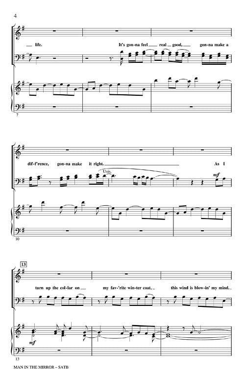 Man In The Mirror Satb Pop Choral Series Michael Jackson