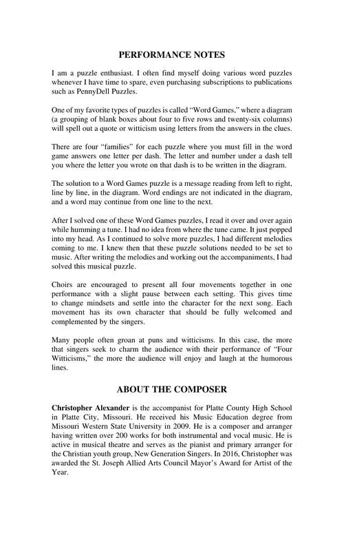 Four Witticisms Henry Leck Creating Artistry SATB Christopher Ale