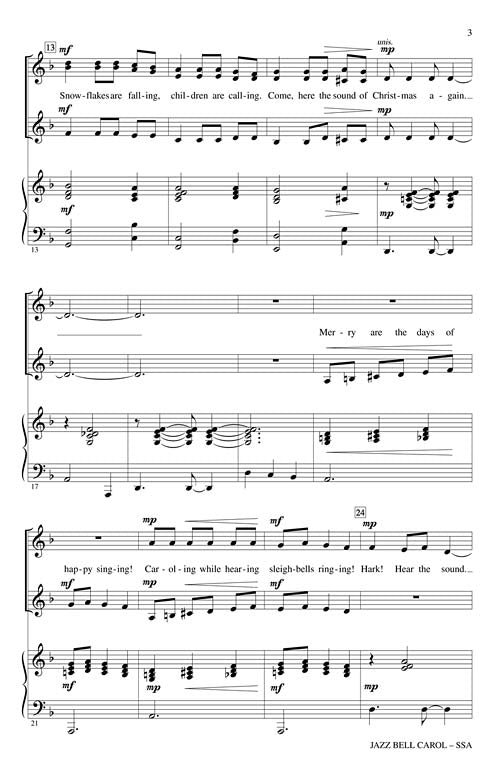 Jazz Bell Carol Secular Christmas Choral Ssa Arranger John Purif