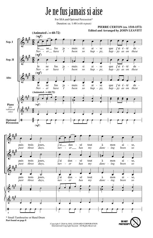 Je Ne Fus Jamais Si Aise Treasury Choral Ssa Pierre Certon