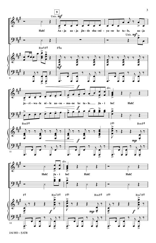 Jai Ho Satb Pop Choral Series Arranger Mark Brymer