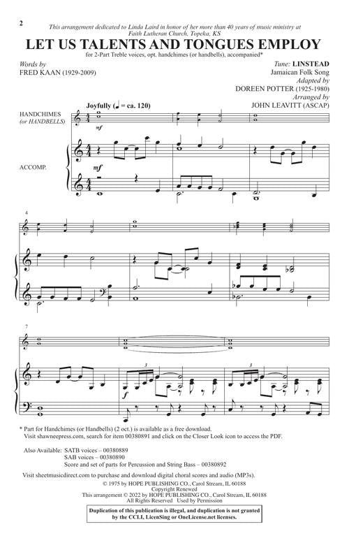 Let Us Talents and Tongues Employ 2-Part w/Handbells Arranger: Jo