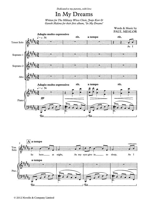 In My Dreams Ssa Paul Mealor