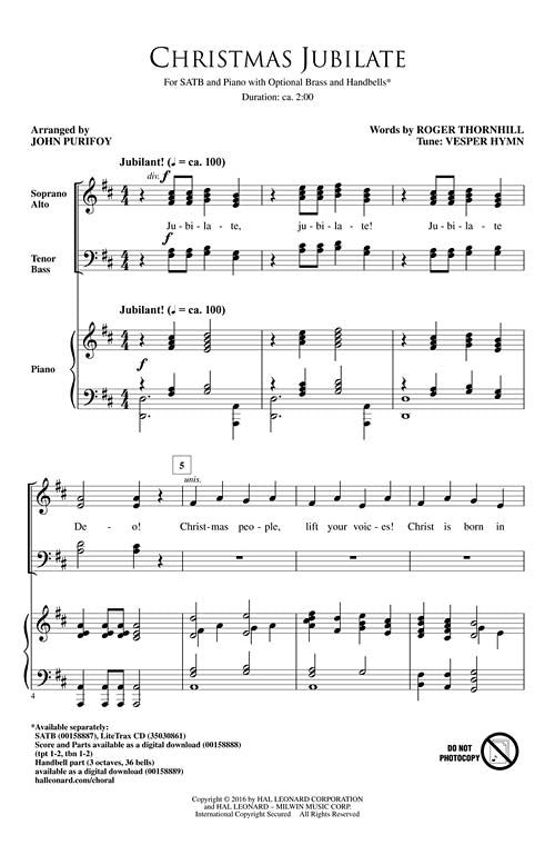 Christmas Jubilate Brookfield Christmas Choral Satb Tune Vesper
