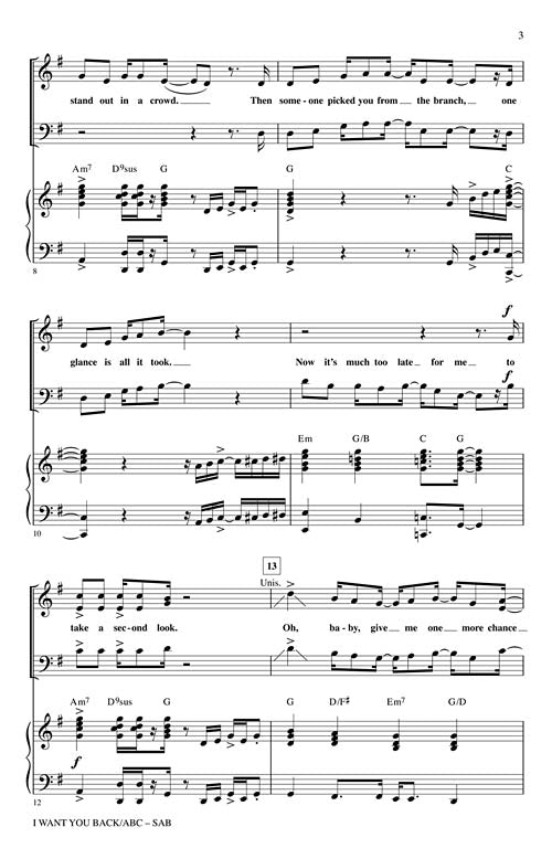 I Want You Back Abc Sab Pop Choral Series Michael Jackson