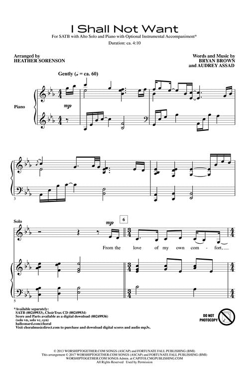 I Shall Not Want Praisesong Choral Satb Audrey Assad