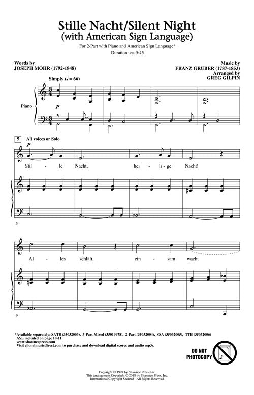Stille Nacht Silent Night With American Sign Language 2 Part Fr