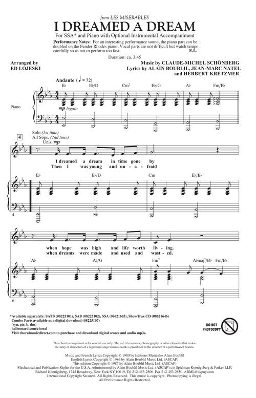 I Dreamed A Dream Satb Pop Choral Series Alain Boublil