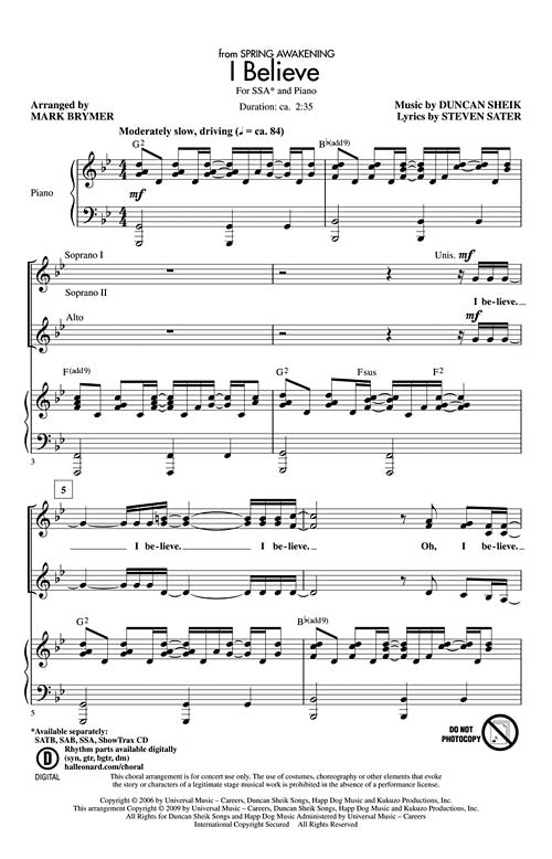 I Believe Jimagine 2 Part Pop Choral Series Arranger Mark Bryme
