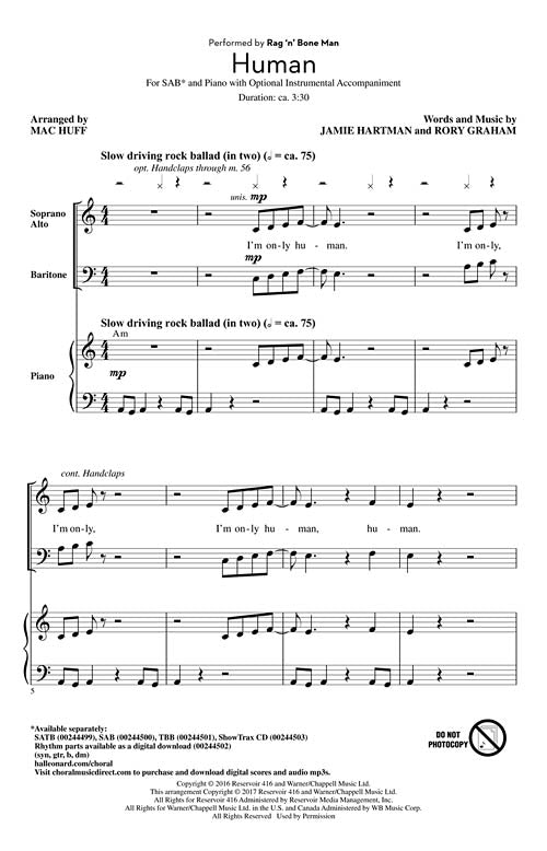 Human Pop Choral Series Sab Ragnbone Man