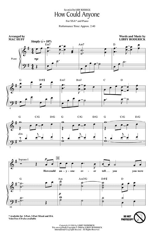 How Could Anyone Discovery Choral Ssa Arranger Mac Huff