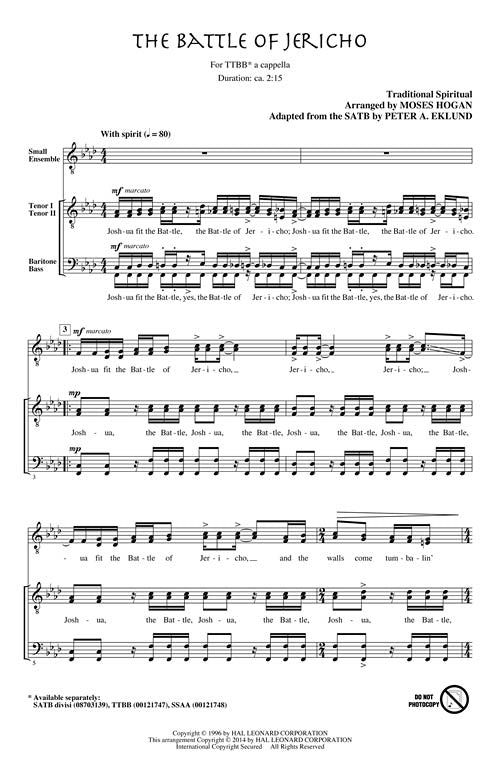 The Battle Of Jericho Choral Ttbb A Cappella Arranger Moses Hoga