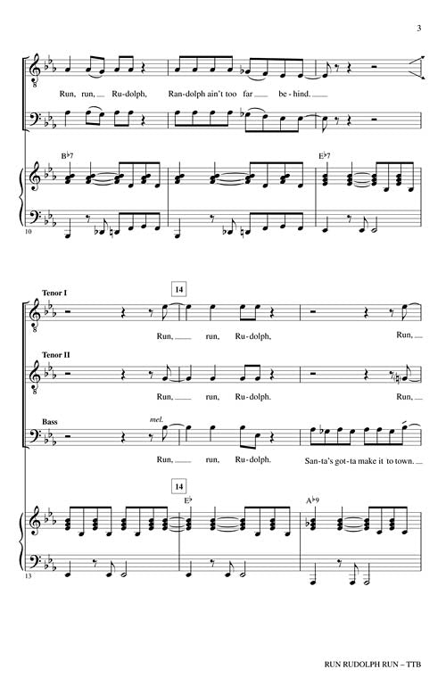 Run Rudolph Run Secular Christmas Choral Ttb Arranger Alan Billi
