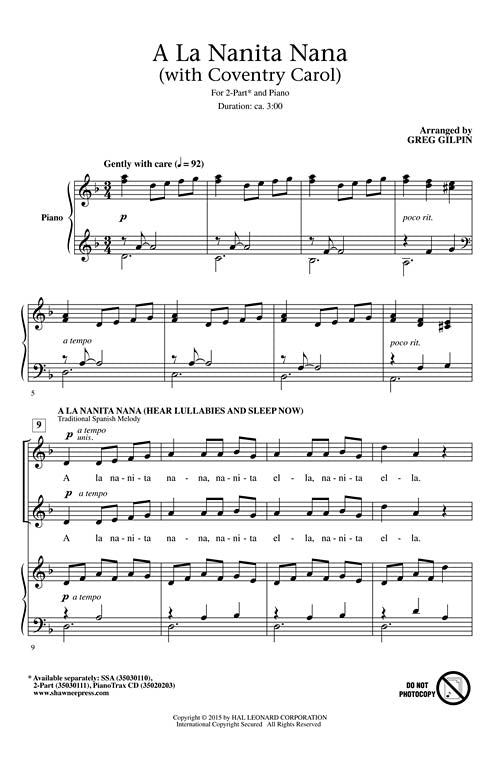 A La Nanita Nana 2 Part Arranger Greg Gilpin