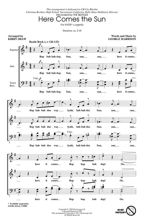 Here Comes The Sun Satb A Cappella Pop Choral Series The Beatles