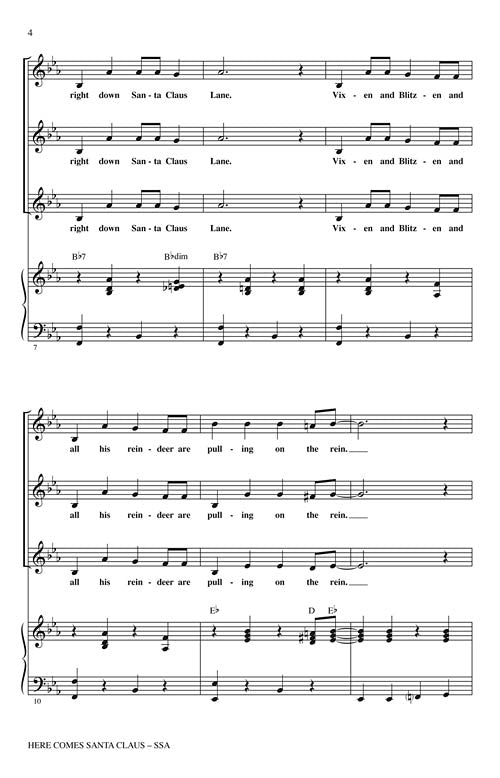 Here Comes Santa Claus Secular Christmas Choral Ssa Glee Cast