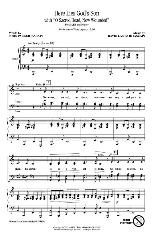 Here Lies Gods Son Brookfield Easter Choral Satb David Lantz Iii