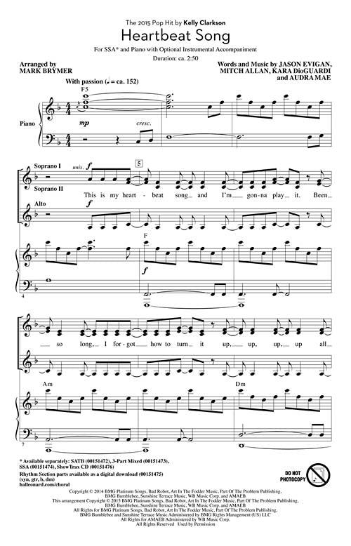 Heartbeat Song Pop Choral Series Ssa Kelly Clarkson
