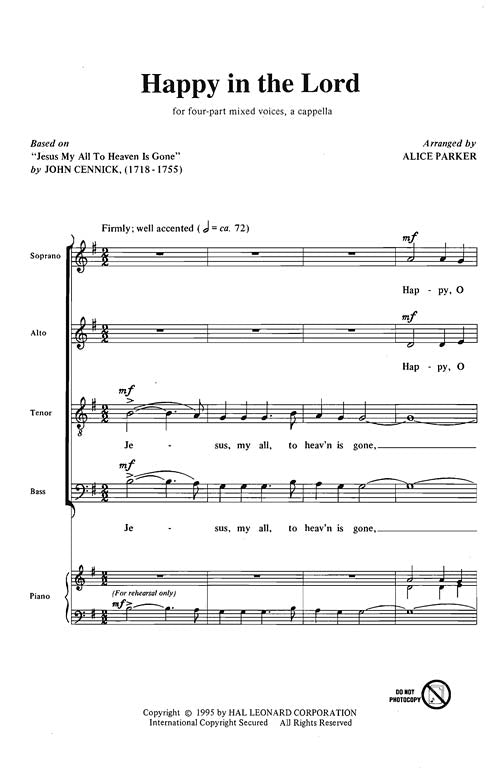 Happy In The Lord Brookfield Choral Series Satb A Cappella John C