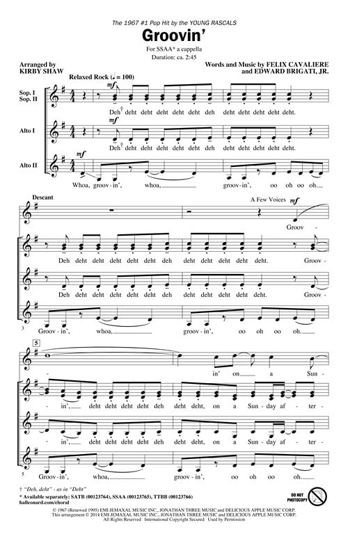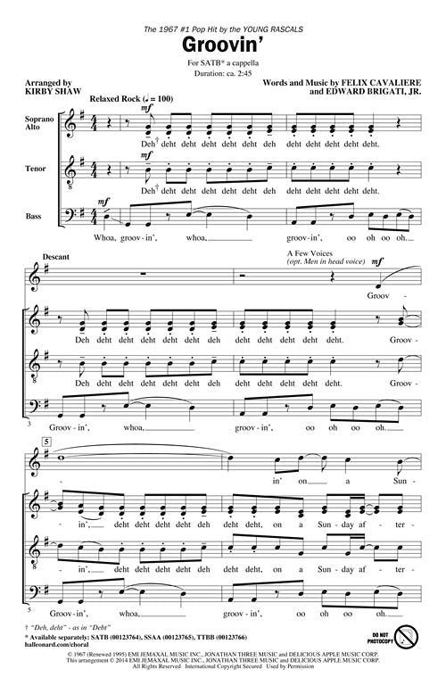 Groovin Pop Choral Series Satb A Cappella Young Rascals